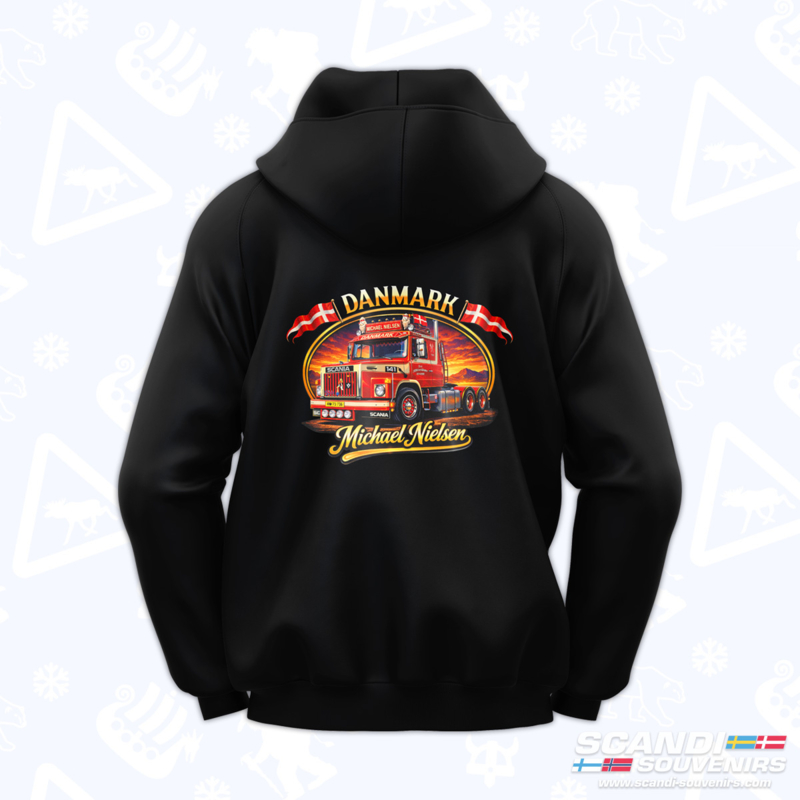 Cool, timeless, and straight from the Scandinavian trucking scene. The Michael Nielsen Hoodie is made for enthusiasts of old-school trucks and Danish transport culture. Featuring a powerful print of a classic Scania and the Danish flag, this hoodie radiates pure passion for the profession.